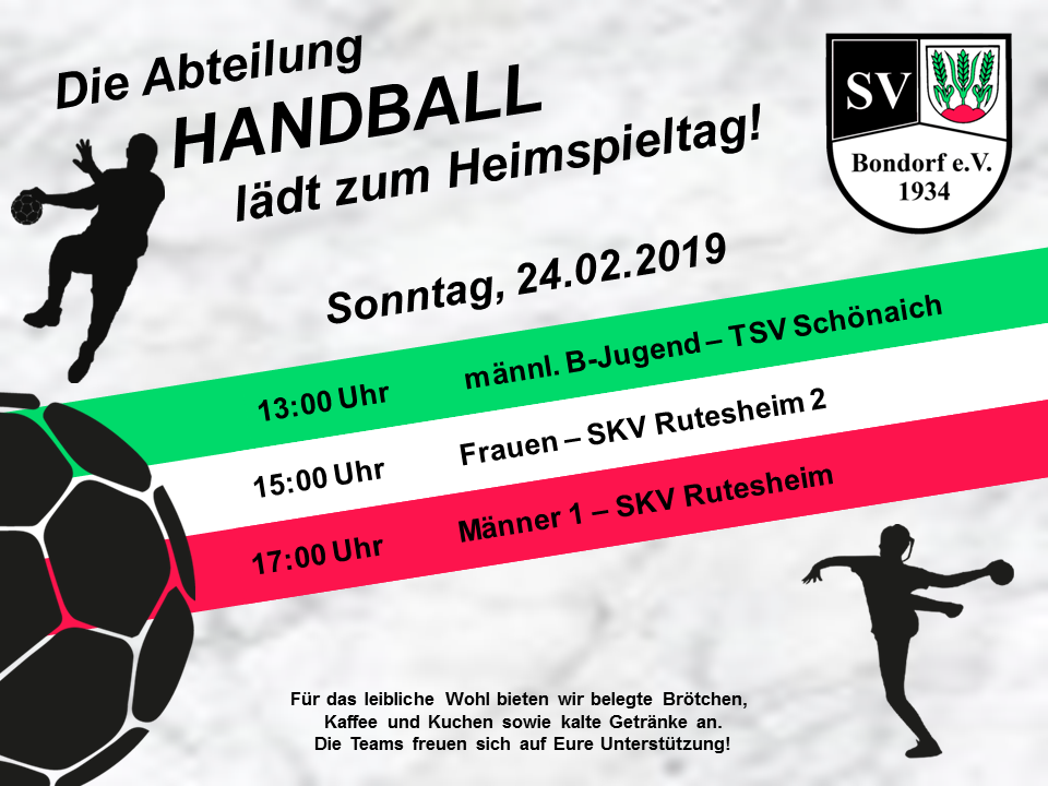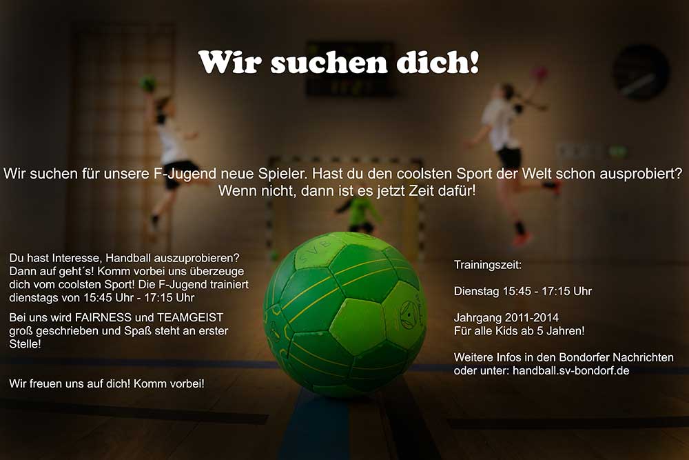 Euch haben die Spiele der deutschen Handballnationalmannschaft bei der WM gefallen? Oder ihr wollt einfach mal so im Handball reinschnuppern? Dann seid ihr genau richtig, kommt vorbei und probiert den coolsten Sport der Welt aus! Wir freuen uns über dich als neuen Spieler bei uns! TEAMGEIST und FAIRNESS werden bei uns großgeschrieben und bekanntlich geht Ausprobieren über Studieren! Also, bis nächste Woche im Training, wir erwarten euch, jeden Dienstag von 15:45 bis 17:15 Uhr.