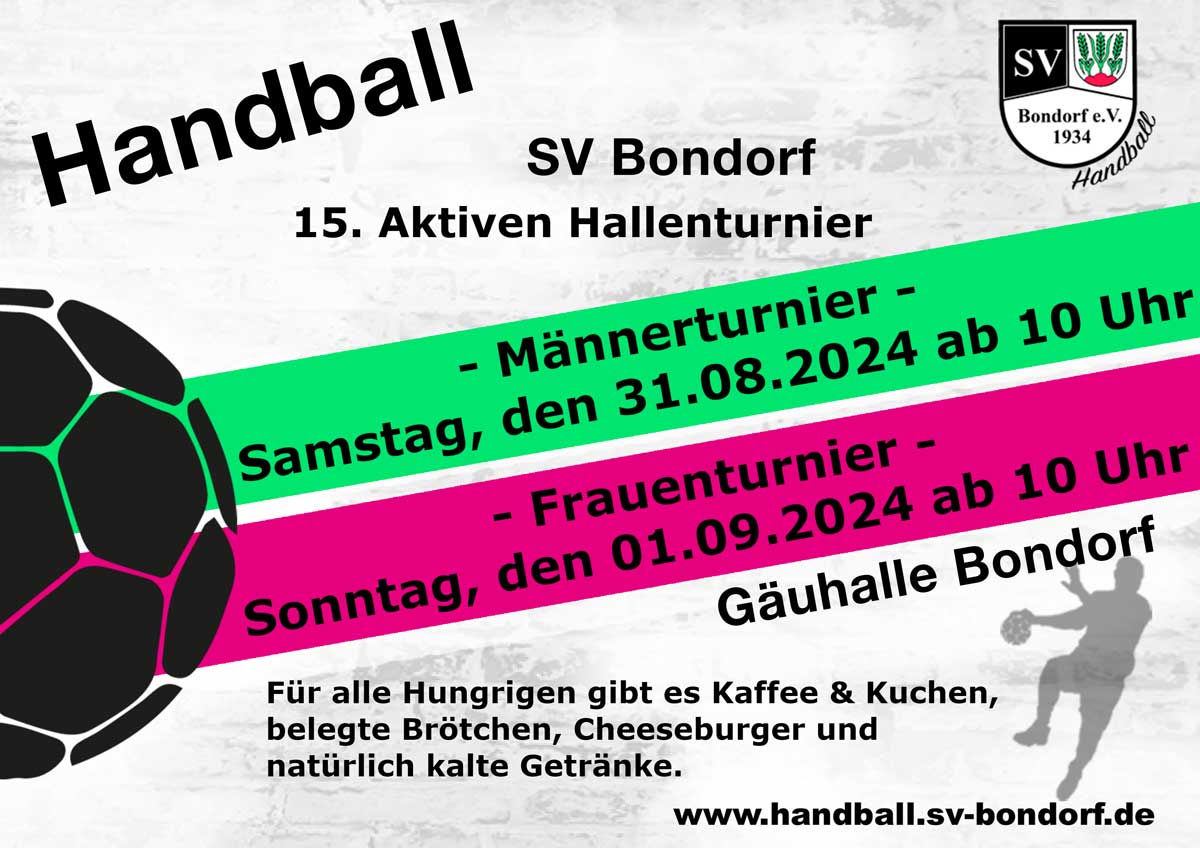 Die Handballabteilung des SV Bondorf veranstaltet am 06.09. & 07.09. ihr alljährliches Handballturnier in der Gäuhalle. Kurz vor der Hallenrunde 2025/26 messen sich die neu formierten Teams noch ein letztes Mal gegen verschiedene Mannschaften aus dem neuen Verband BWHV.
