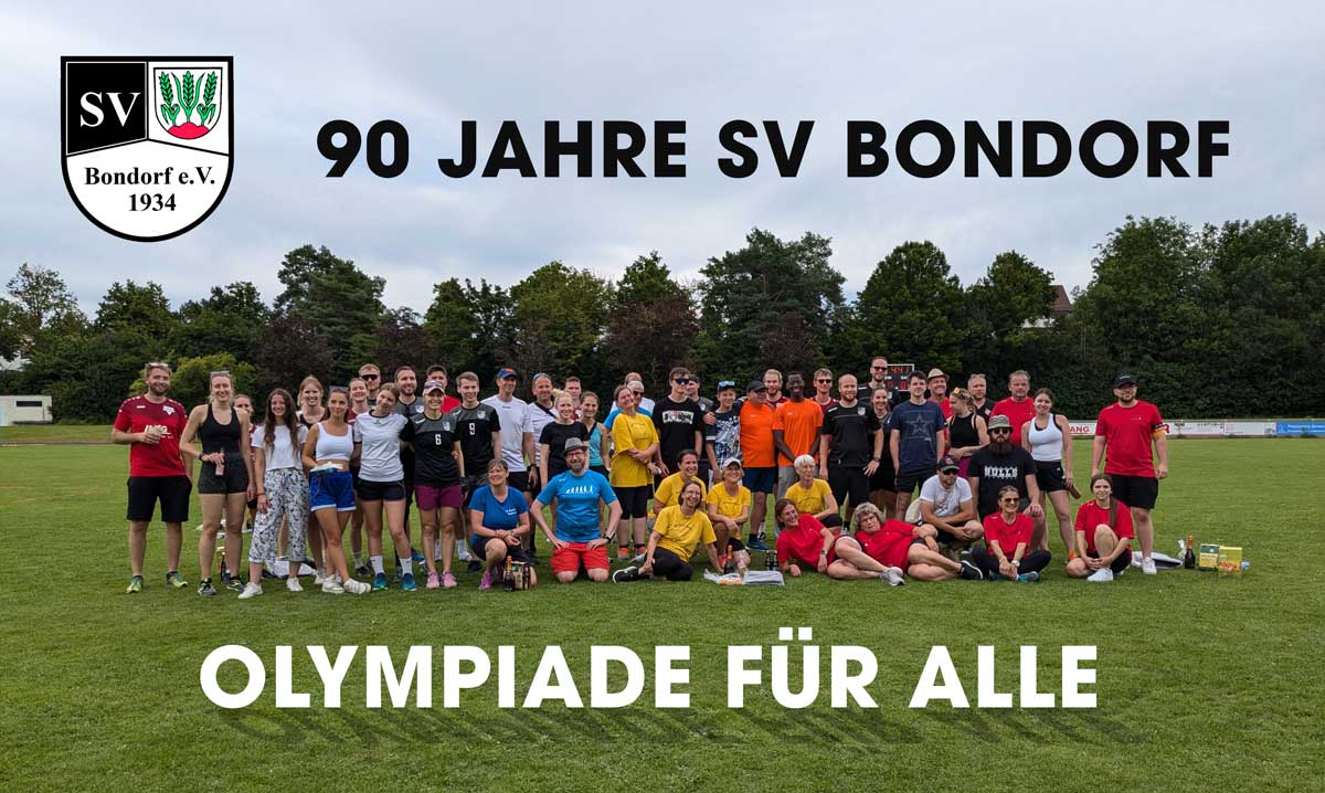 Am vergangenen Sonntag wurde im Rahmen des 90-jährigen Jubiläums des SV Bondorf die „Olympiade für Alle“ auf dem Rasenplatz veranstaltet. Unter dem Motto „Spaß am Sport“ konnten sich bei sommerlichen Temperaturen acht Mannschaften in verschiedenen Disziplinen messen und ihre Geschicklichkeit unter Beweis stellen.